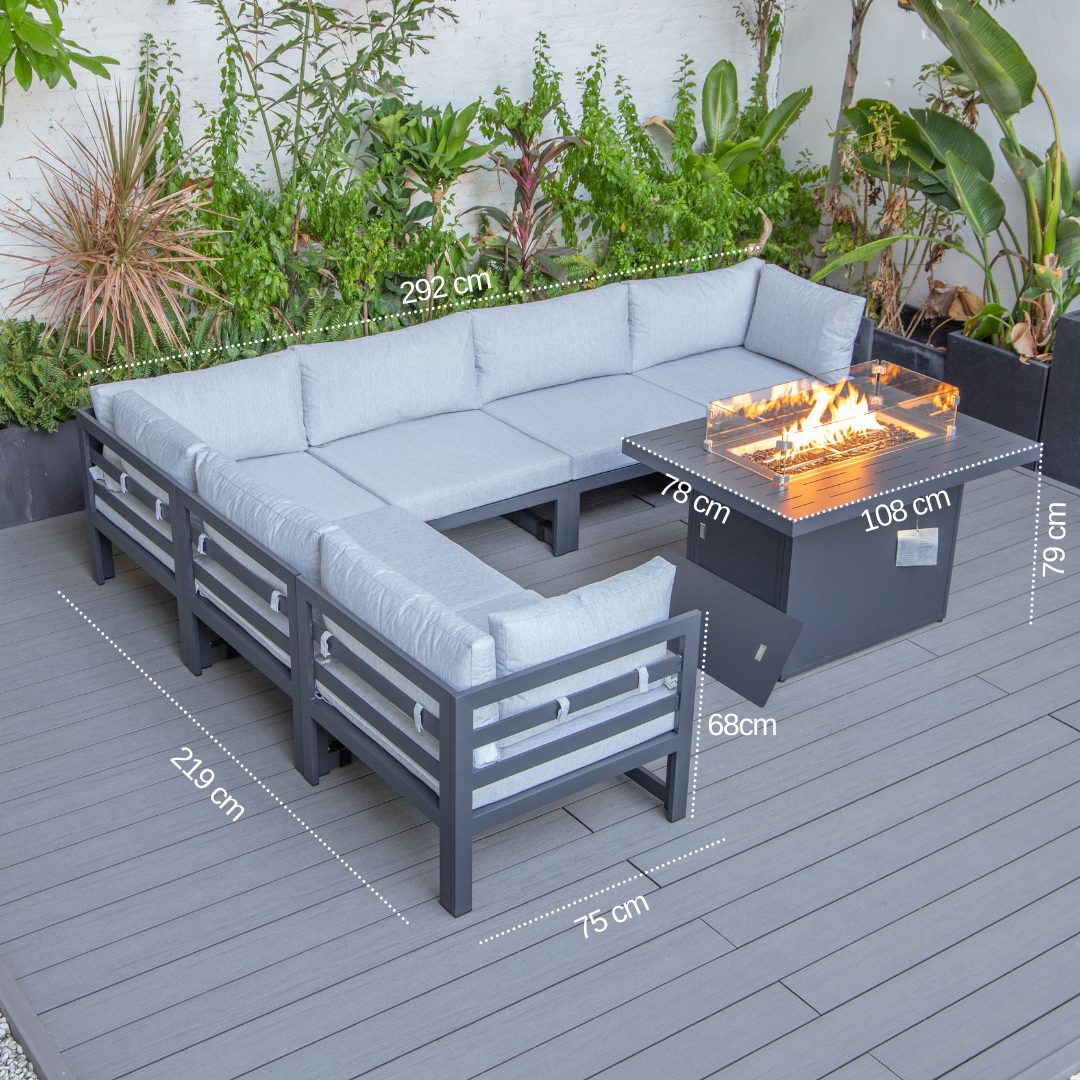 Cheltenham Aluminium 6 Seater Corner Sofa With Fire Pit
