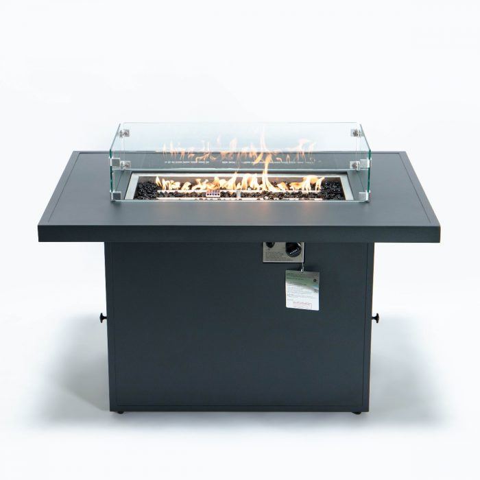 A CE certified propane gas fire pit table with auto-ignition, which will provide you warmth on those slightly colder evenings without worrying about the messy ashes.