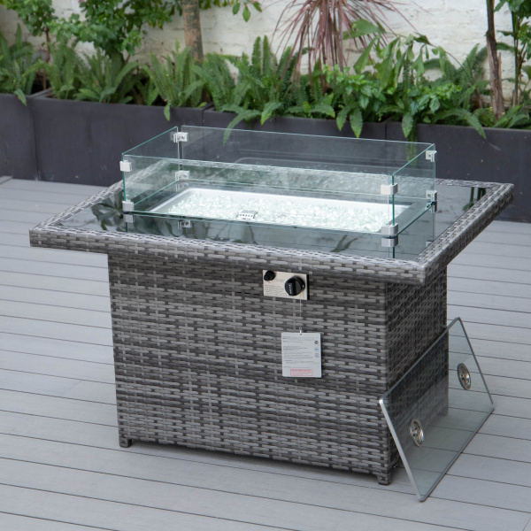 -CSA 55,000 BTU Rattan Fire Pit ( Includes Tempered Glass Shield and crystal stones)