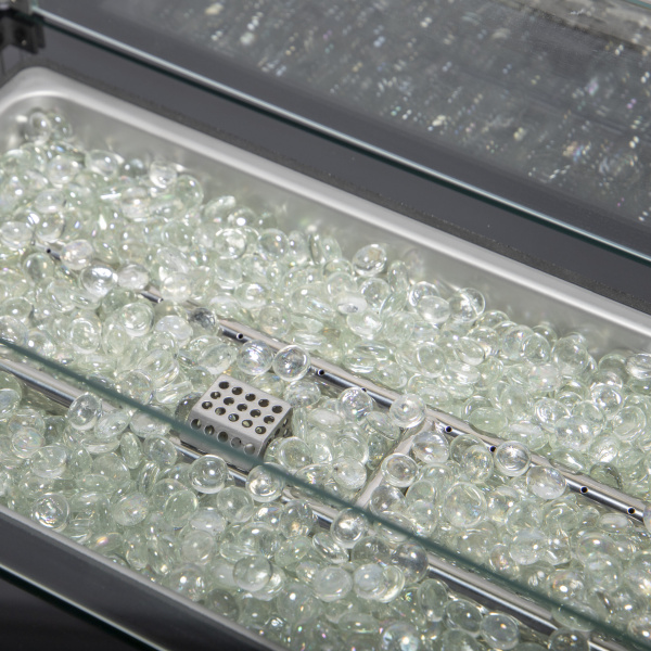 The Cheltenham is a CSA approved 55,000 BTU adjustable multi spark fire pit and includes crystal stones which beautifully accent the flames. When the fire pit is not in use, you are able to transform the fire pit into a table top by closing the lid.