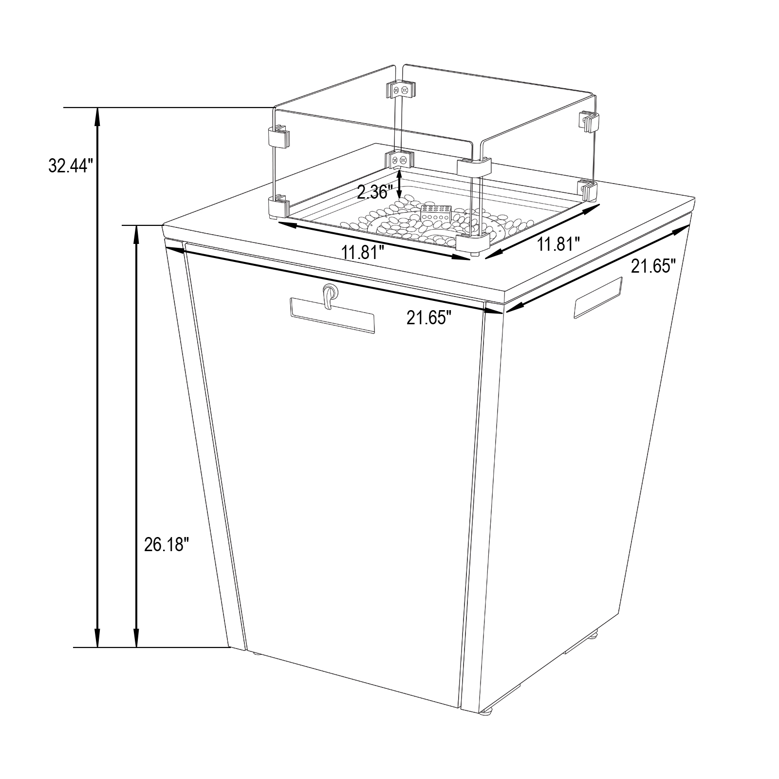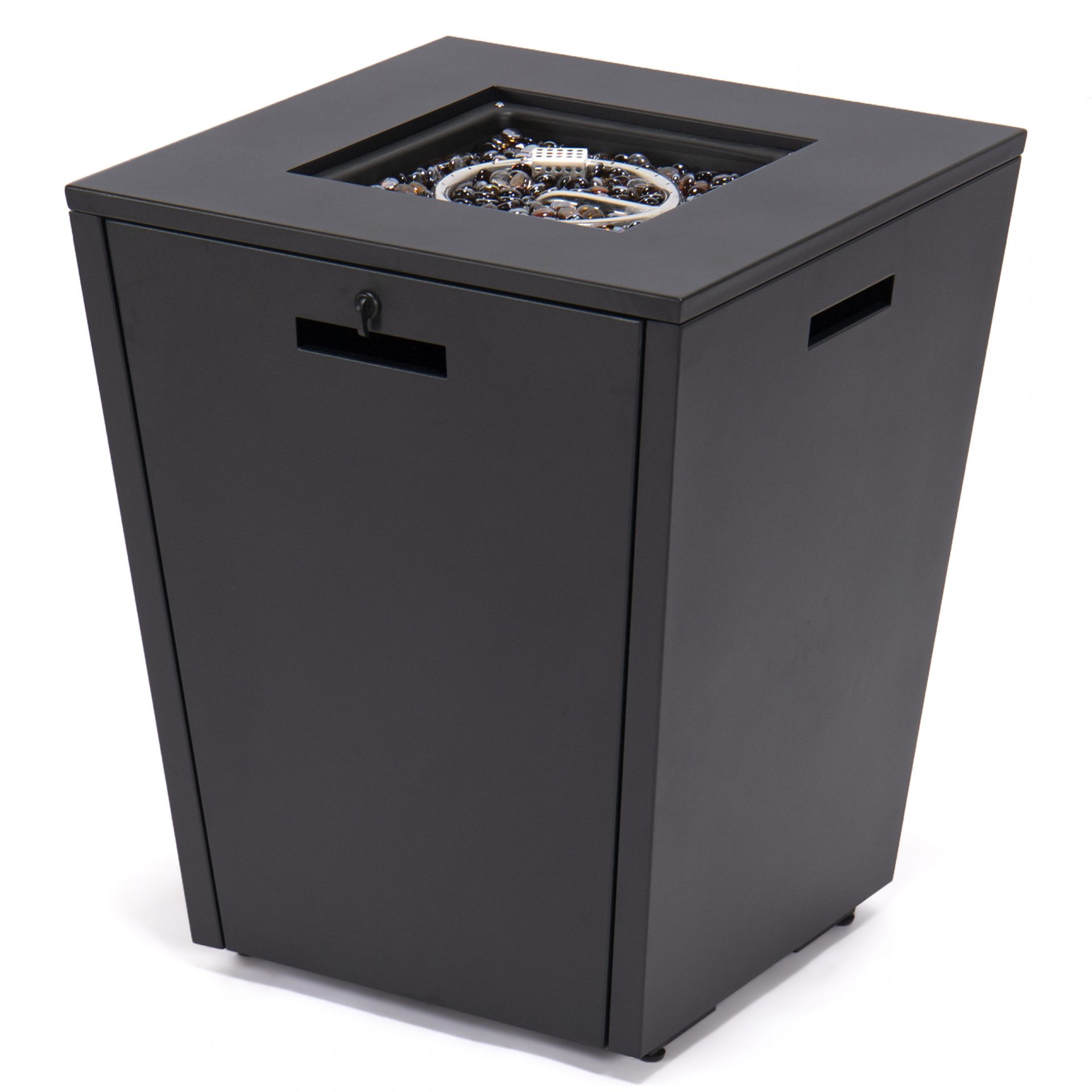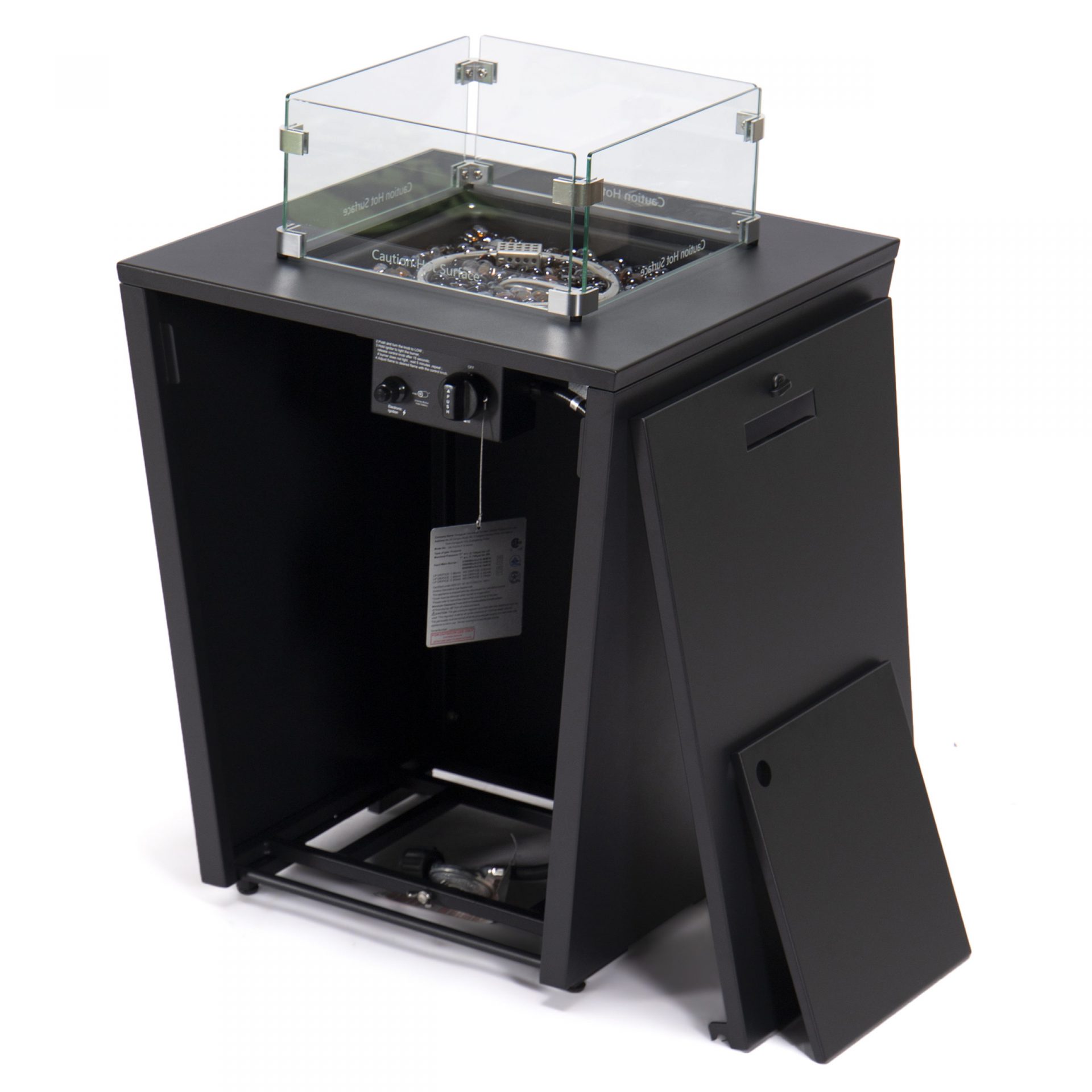 The Cheltenham is a CSA approved 55,000 BTU adjustable multi spark fire pit and includes crystal stones which beautifully accent the flames. When the fire pit is not in use, you are able to transform the fire pit into a table by closing the lid.